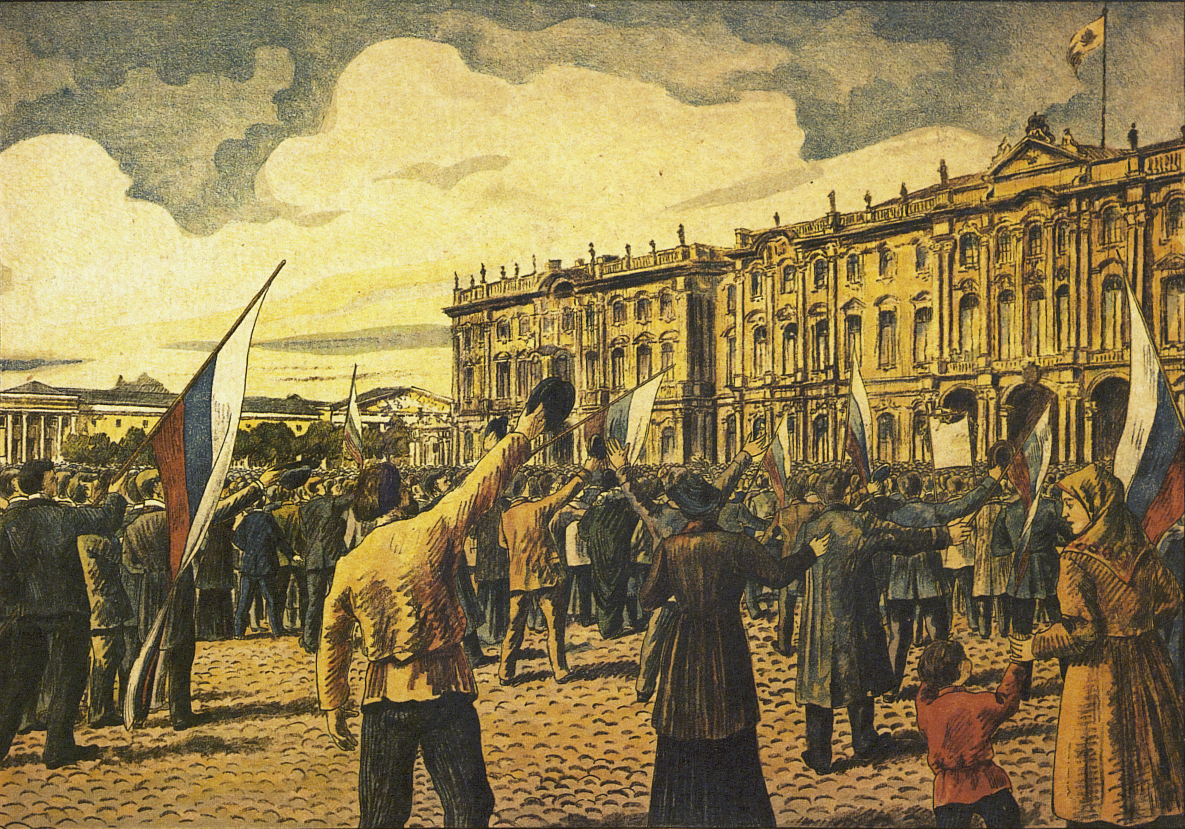 Плакат: Площадь перед Зимним дворцом в Санкт-Петербурге 2 августа 1914 г. в день обнародования манифеста об объявлении войны