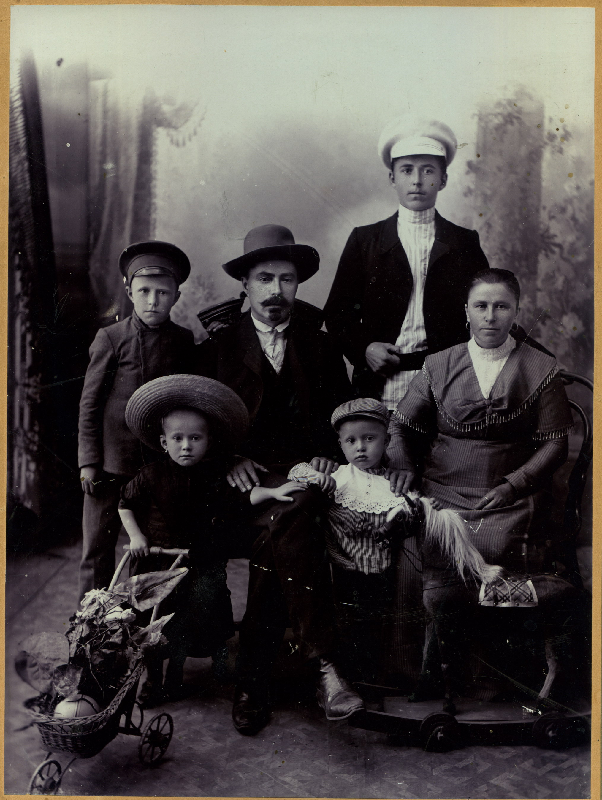 Групповой семейный портрет. На обороте надпись: «На память дорогой сестрице Анне Лаврентьевне и Гавриле Ивановичу и зятю от братца и семьи нашей». Муром, 1905-1908.