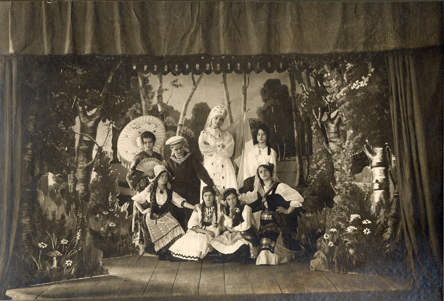 «Живая картина – «Антанта»». Ученицы Муромской женской гимназии в костюмах стран Антанты. Муром, 1914-16 гг.