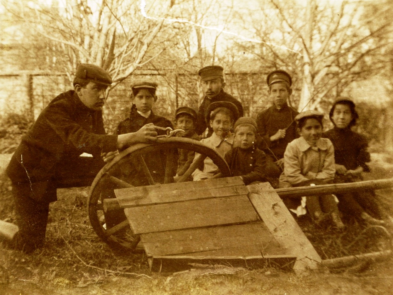 Неизвестный фотограф. У телеги во дворе дома. Муром, 1910-1912.