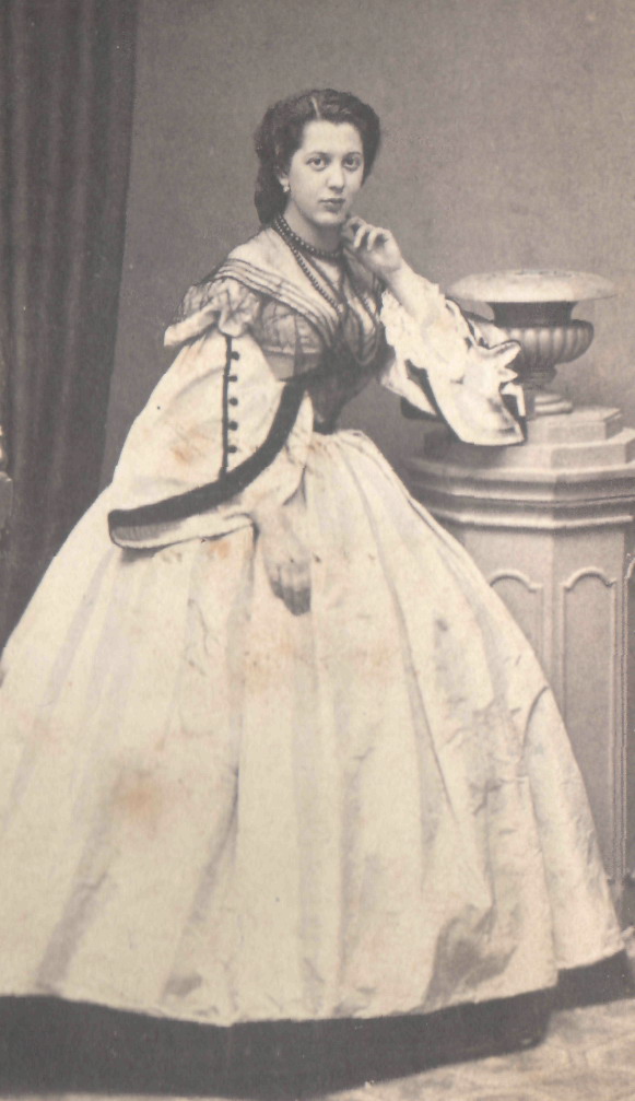 Неизвестный фотограф. Портрет женщины в светлом платье на кринолине. 1860-е гг.