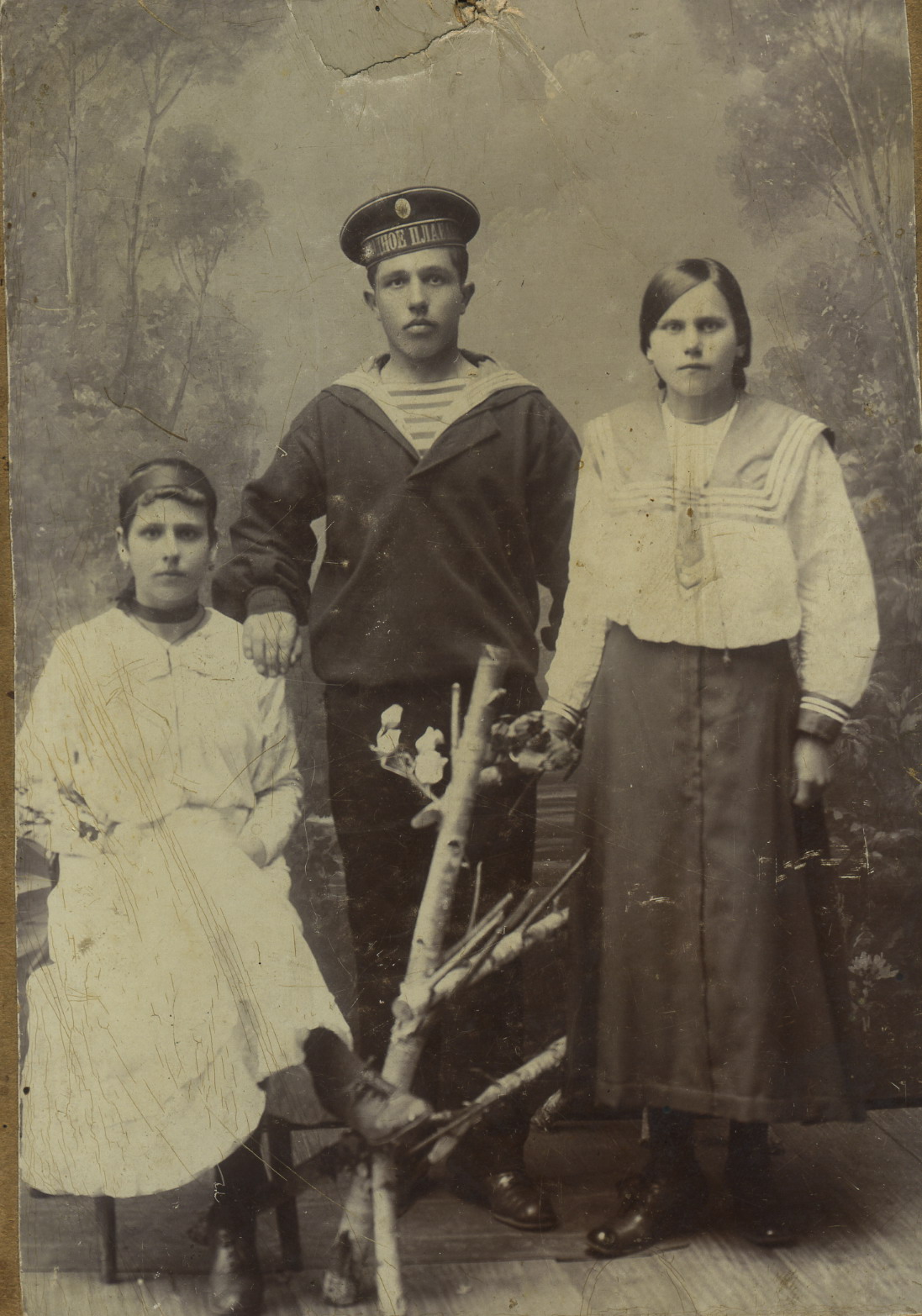Неизвестный фотограф. Портрет матроса с двумя девушками. Справа – Елизавета Сергеевна Деева. Муром, 1919. Архив Пичугиных.