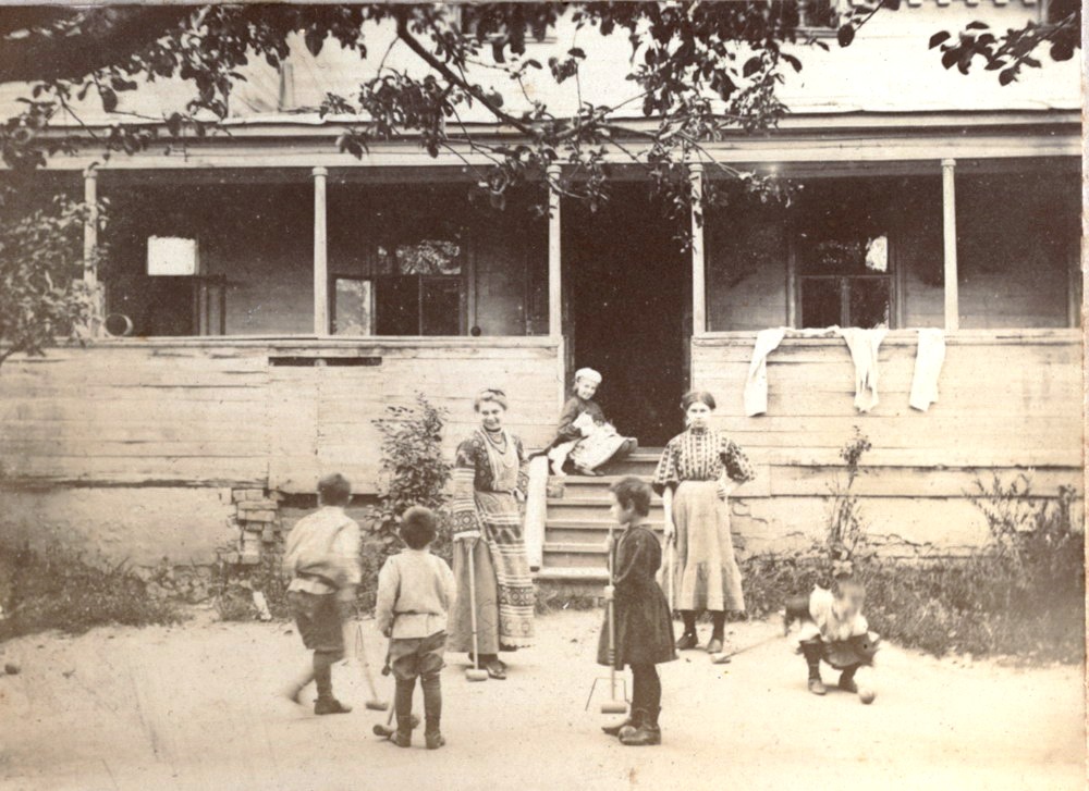 Мяздриков И.П. (1854-1931 гг.) Игра в крокет во дворе дома. Муром, сер. 1890-х гг. 8,5х11,3