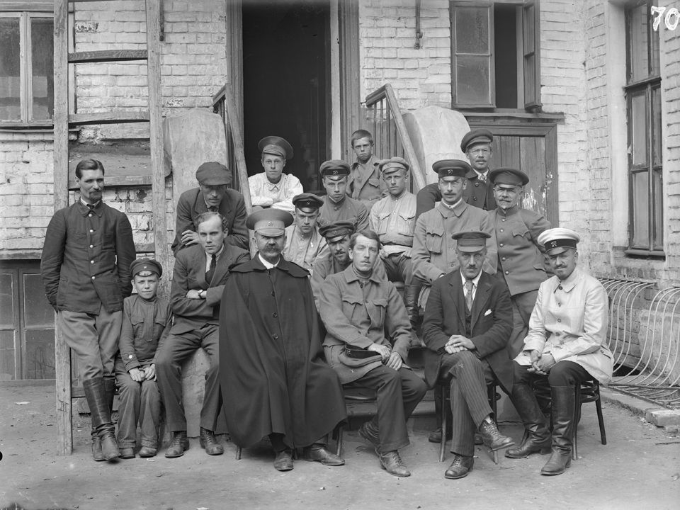 Групповой портрет рабочих и служащих у крыльца. Нижний Новгород.