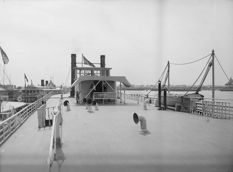 Верхняя палуба заднеколесного парохода. Общий вид. Автор: В.А. Зевеке Место события: г. Н.Новгород Дата: 1903 г.