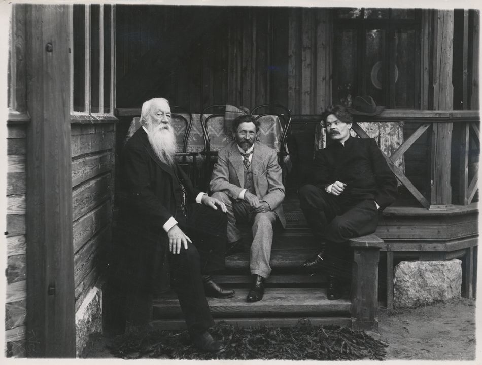 А.М. Горький, В.В. Стасов, И.Е. Репин на даче «Пенаты».