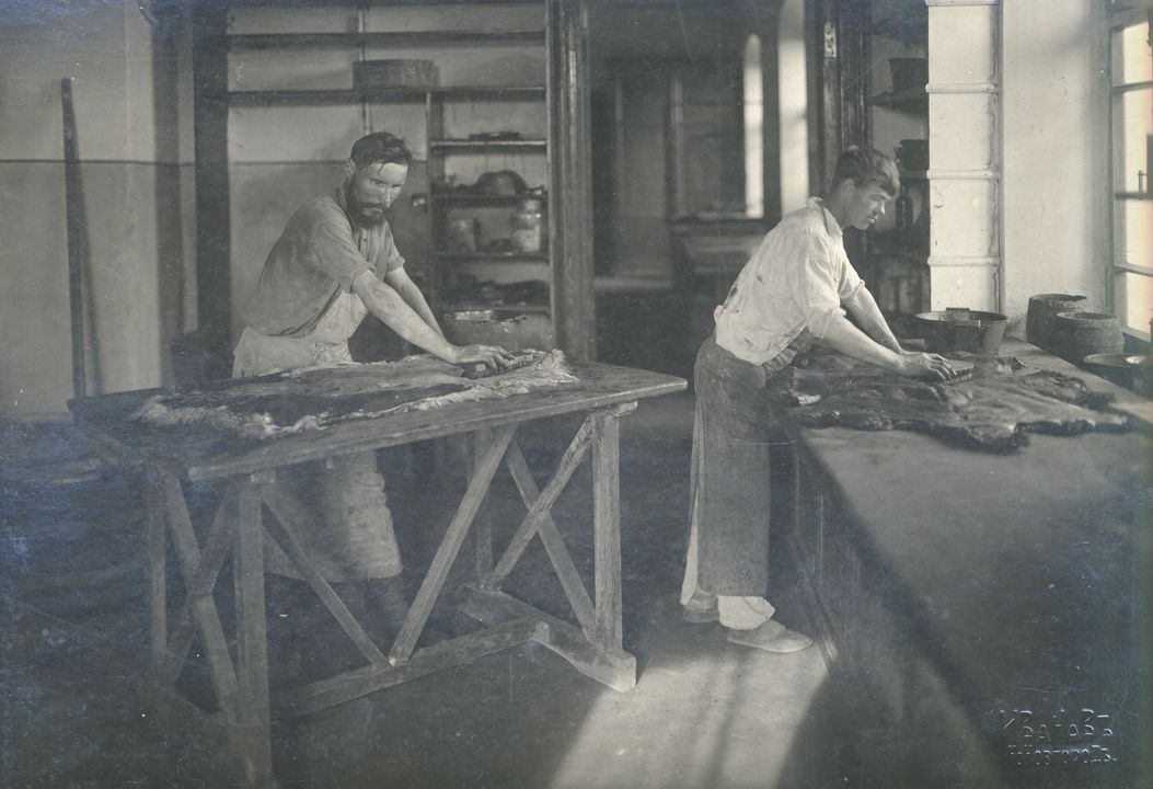 Работа овчин на черную мездру. Дата: 1915 г. Место съемки: с. Большое Мурашкино, Нижегородская губерния Автор: Иванов И.