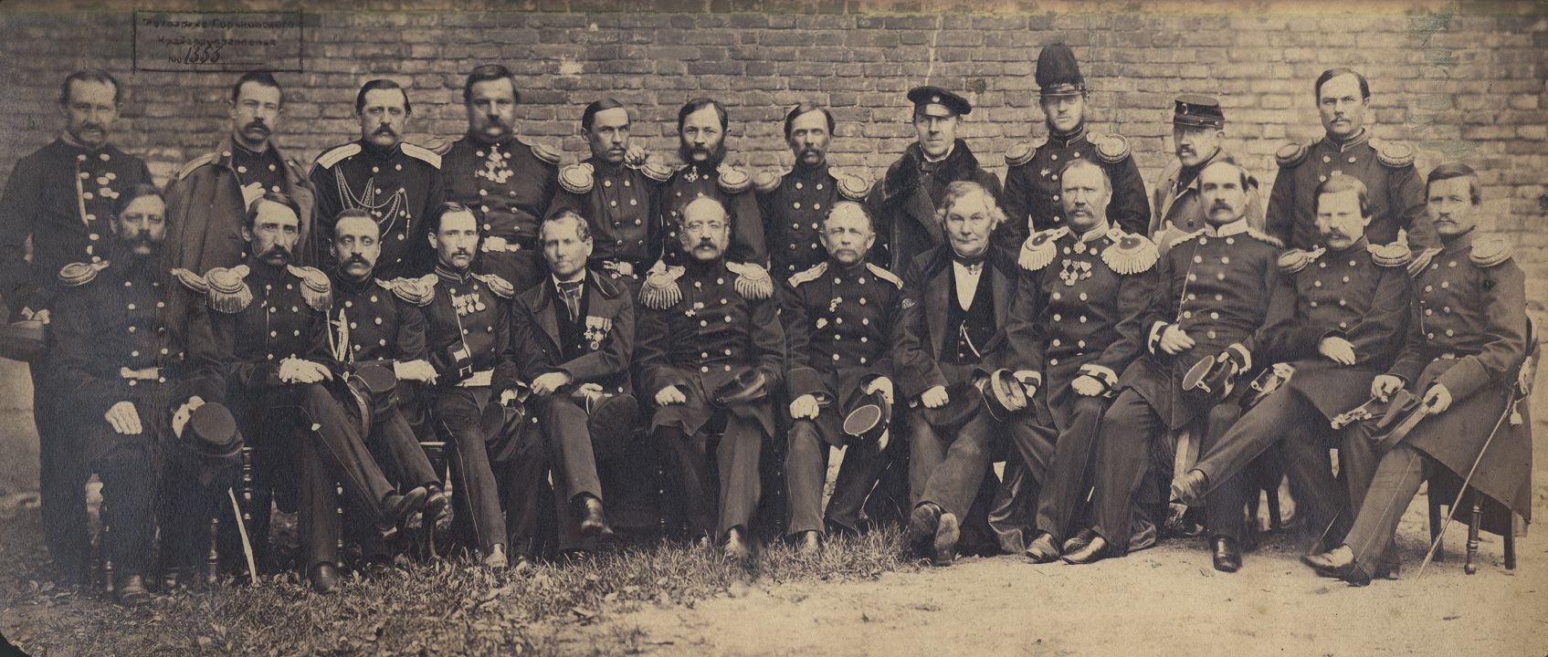 Группа учителей и воспитателей Нижегородского Кадетского корпуса. Дата: 1862 г. Место съемки: г. Н.Новгород Автор: Еливева