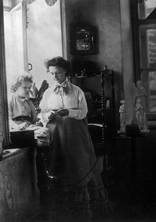 Ольга Григорьевна Карелина с Андреем Карелиным, сидящим на подоконнике. Автор: А.О. Карелин Место события: г. Н.Новгород Дата: к. ХIХ в.