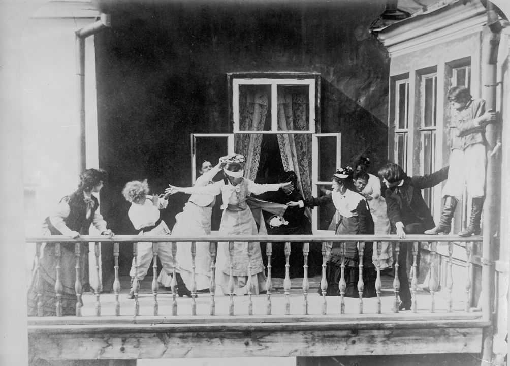 Игра в жмурки на балконе. Автор: А.О. Карелин Место события: г. Н.Новгород Дата: к. ХIХ в.