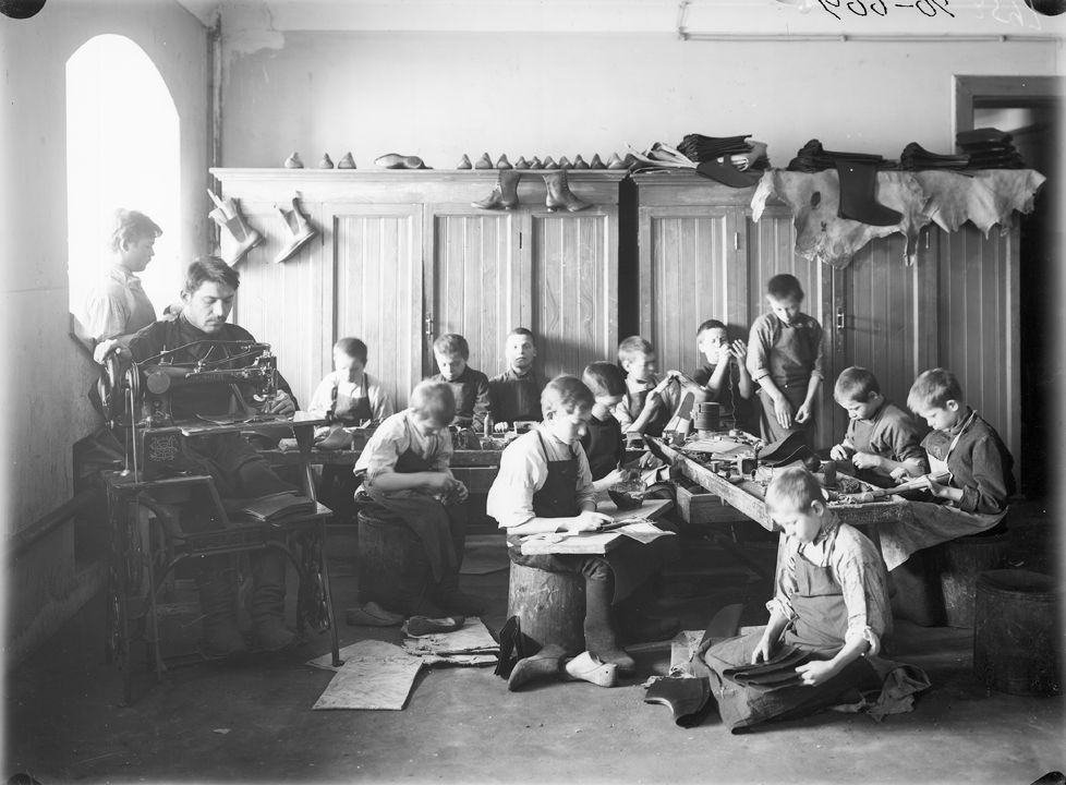Учебная сапожная мастерская в школе имени Александра III. Дата: 1909 г. Место съемки: г. Н.Новгород Автор: М.П. Дмитриев