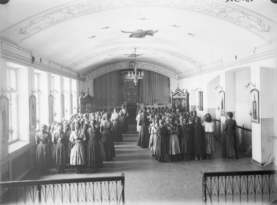 Школа имени Александра III. Класс на утренней молитве. Дата: 1909 г. Место съемки: г. Н.Новгород Автор: М.П. Дмитриев