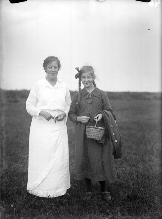 Портрет женщины в светлом платье и девочки в темном платье с корзиной в руках. Автор: В.А. Зевеке Место события: неизвестно Дата: 1915-1916 гг.