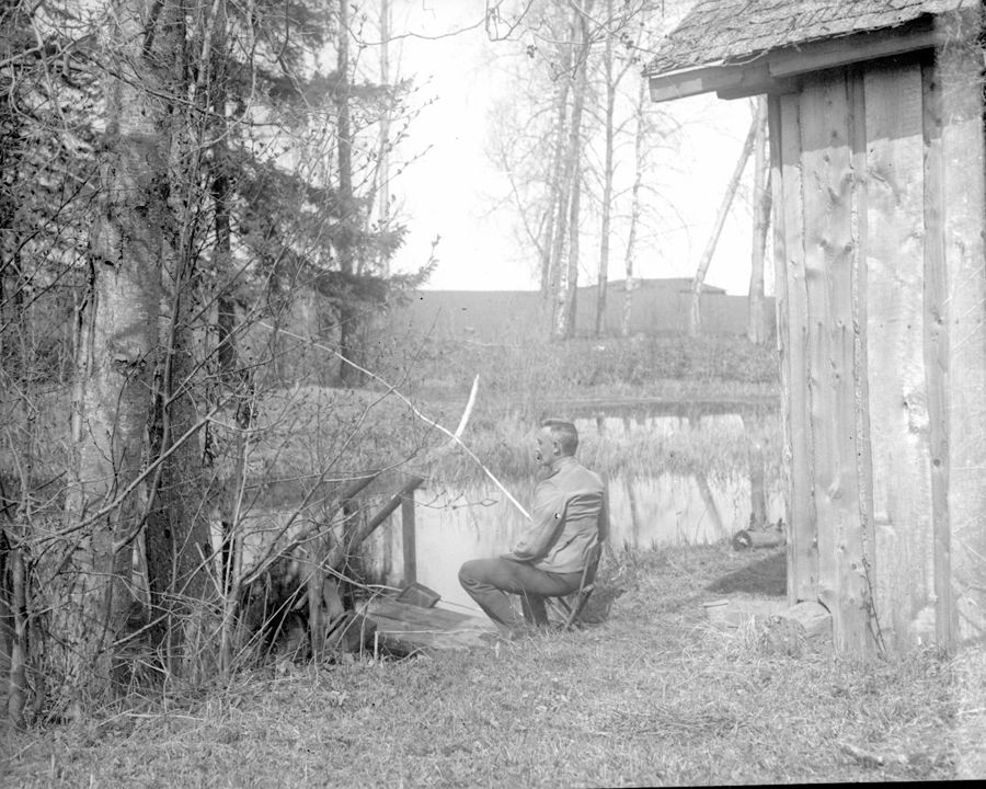 Молодой человек с удочкой у водоема. Автор: А.А. Зевеке Место события: г. Н.Новгород Дата: к. XIX - нач. ХХ вв.