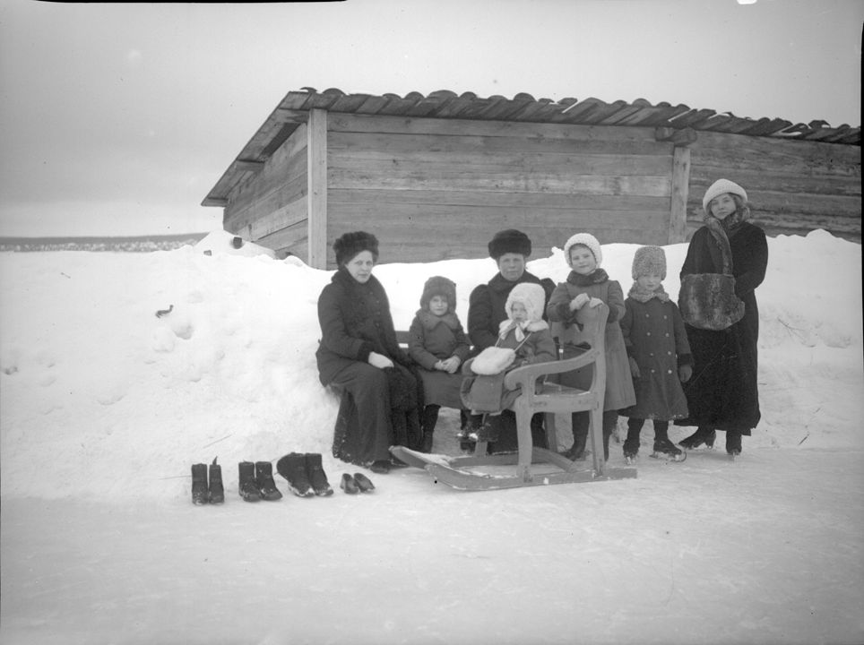Группа людей на коньках. Автор: В.А. Зевеке Место события: г. Воткинск Дата: 1913 г.