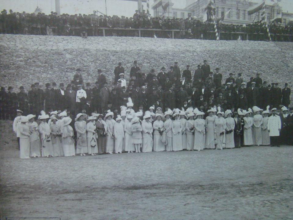 Визит Николая II на празднование 300-летия дома Романовых в г. Н.Новгород. Группа дворянства и купечества при встрече Николая II.