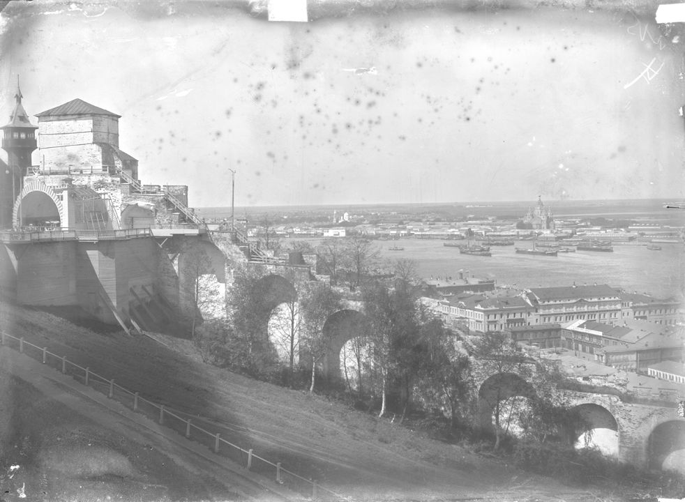 Вид на Сибирские пристани со стороны Нижегородского кремля. Дата: 1913 г. Автор: М. Хрипков Место съемки: г. Н.Новгород