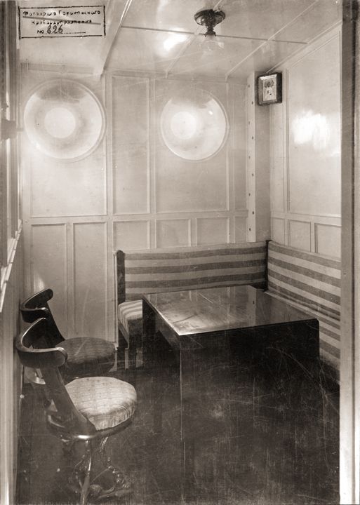 Визит Николая II на празднование 300-летия дома Романовых в г. Н.Новгород. Каюта парохода «Межень», на котором Николай II отбыл из Нижнего Новгорода. Дата: 1913 г. Место съемки: г. Н.Новгород Автор: М.П. Дмитриев