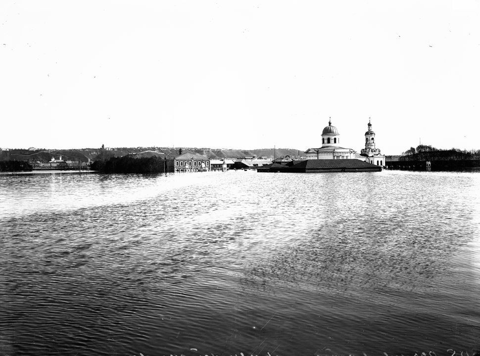Вид на Нижегородскую ярмарку и Армянскую церковь во время половодья. Нижний Новгород.