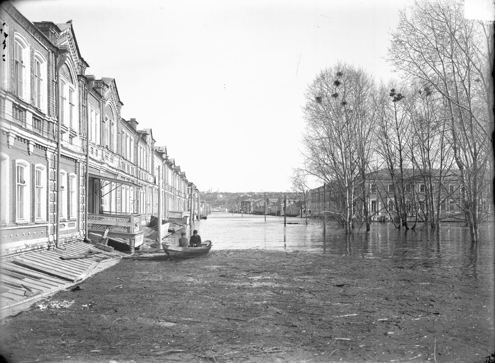 Нижегородская ярмарка. Вид на Нижегородскую улицу во время половодья. Дата: к. ХIХ в. – н. ХХ вв.Автор: М.П. Дмитриев Место съемки: г. Н.Новгород
