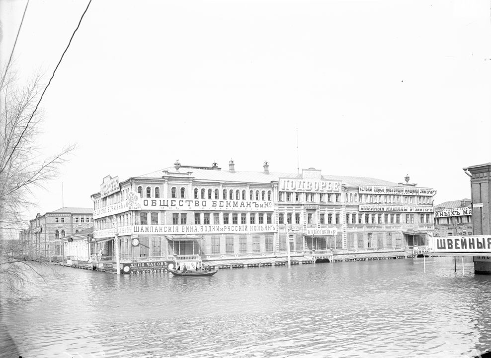 Нижегородская ярмарка во время половодья. Вид на Театральную площадь. Нижний Новгород.