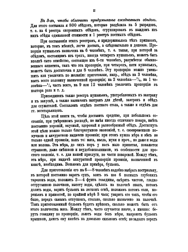 Отличительной особенностью этой книги, по сравнению с предшествующими, является точное, а не примерное, указание количества используемых ингредиентов. Руководствуясь целью уменьшить расходы в домашнем хозяйстве, автор во всех помещенных рецептах указала точную пропорцию всех ингредиентов на 6 человек.