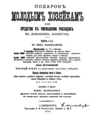 Книга «Подарок молодым хозяйкам или средство к уменьшению расходов в домашнем хозяйстве» является кулинарным бестселлером XIX века. Впервые изданная в 1861 году в Курске, она выдержала более тридцати переизданий в конце XIX — начале XX века и не потеряла своей актуальности и сегодня.
