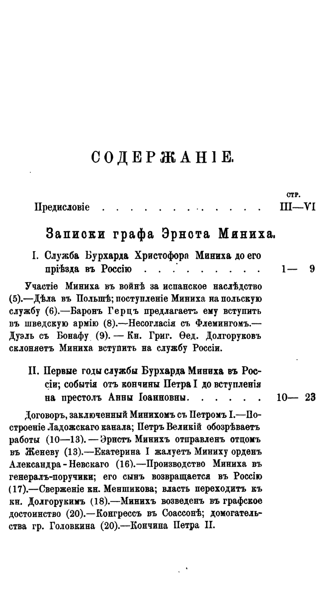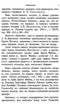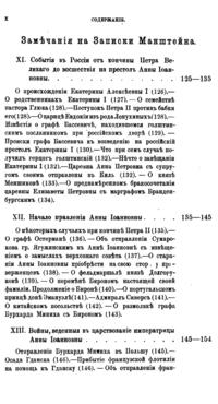 В сборник включены «Записки графа Эрнста Миниха» (1817), написанные им в Вологде в ссылке в 1758 году. Впервые на русском языке они были изданы в Санкт-Петербурге в 1817 году.