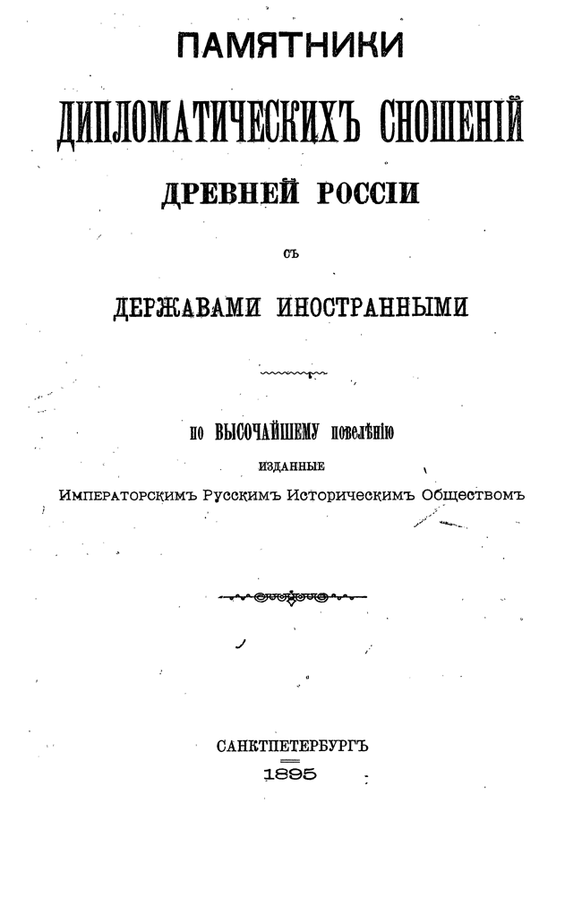 Памятники дипломатических сношений Московского государства с азиатскими народами: Крымом, Казанью, Ногайцами и Турцией. Часть 1-ая (годы с 1474 по 1505).