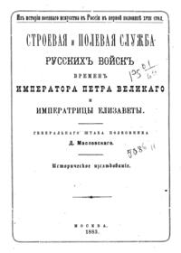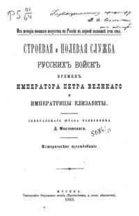 Строевая и полевая служба русских войск времен Императора Петра Великого и Императрицы Елизаветы