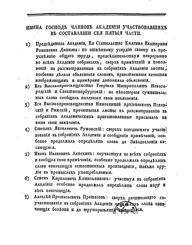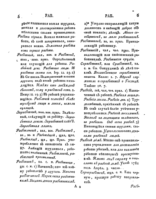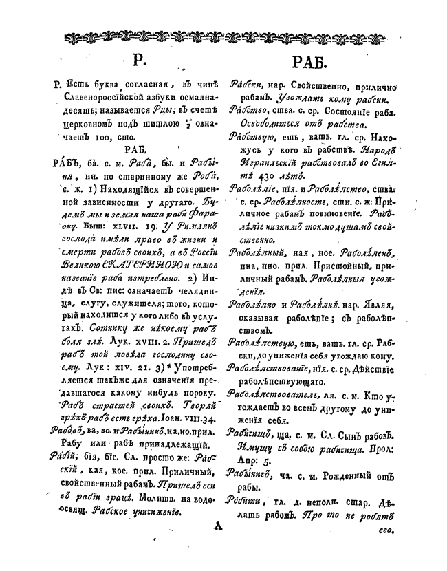 Знаменитый словарь Российской Академии, первый толковый словарь русского языка, содержащий 43 357 слов в 6 частях. Работа над словарём началась в 1783 году, и заняла 11 лет.