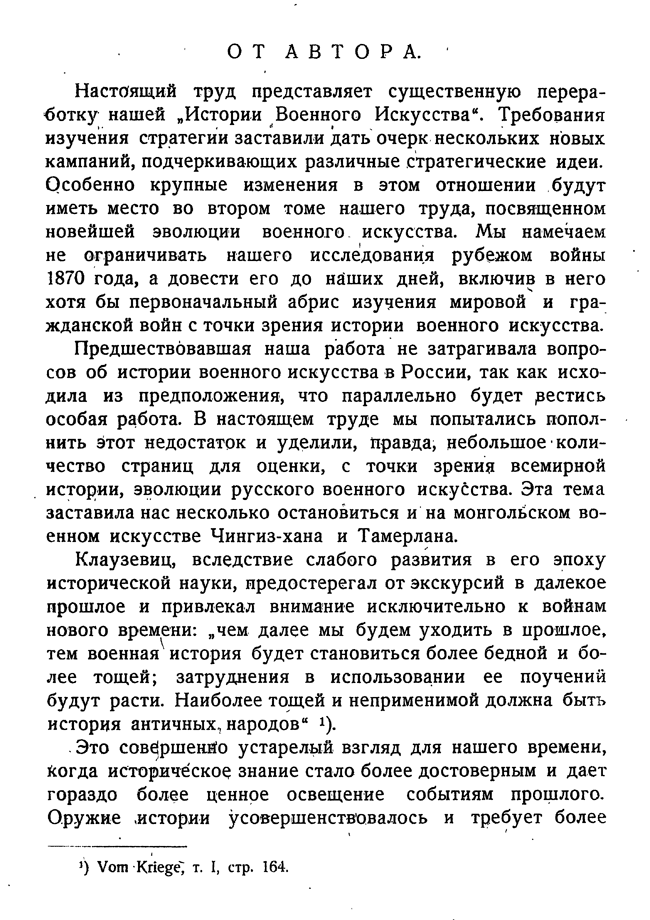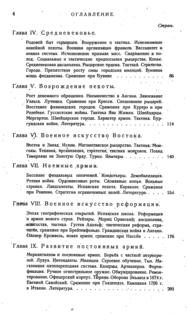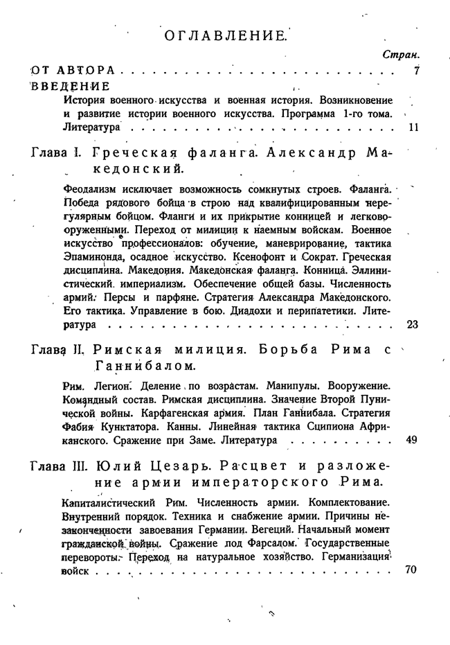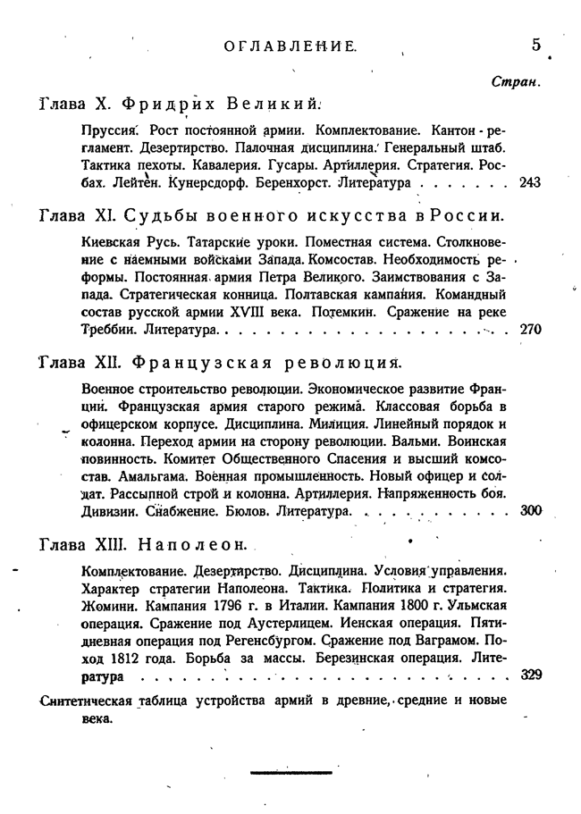 Работа рассматривает полководческое искусство классиков и средневековья, а также затрагивает вопросы истории военного искусства в России.