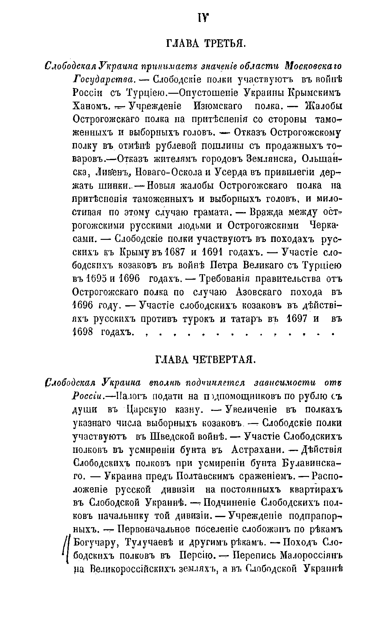 Документальное описание истории слободских казачьих полков (Острогожского, Сумского, Харьковского, Ахтырского, Изюмского и др.), за период XVII – XVIII веках. Приведены подробная хронология исторических событий, описания изменений в их структуре и службе.