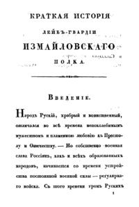 Краткая исторiя Лейбъ-гвардiи Измайловскаго полка