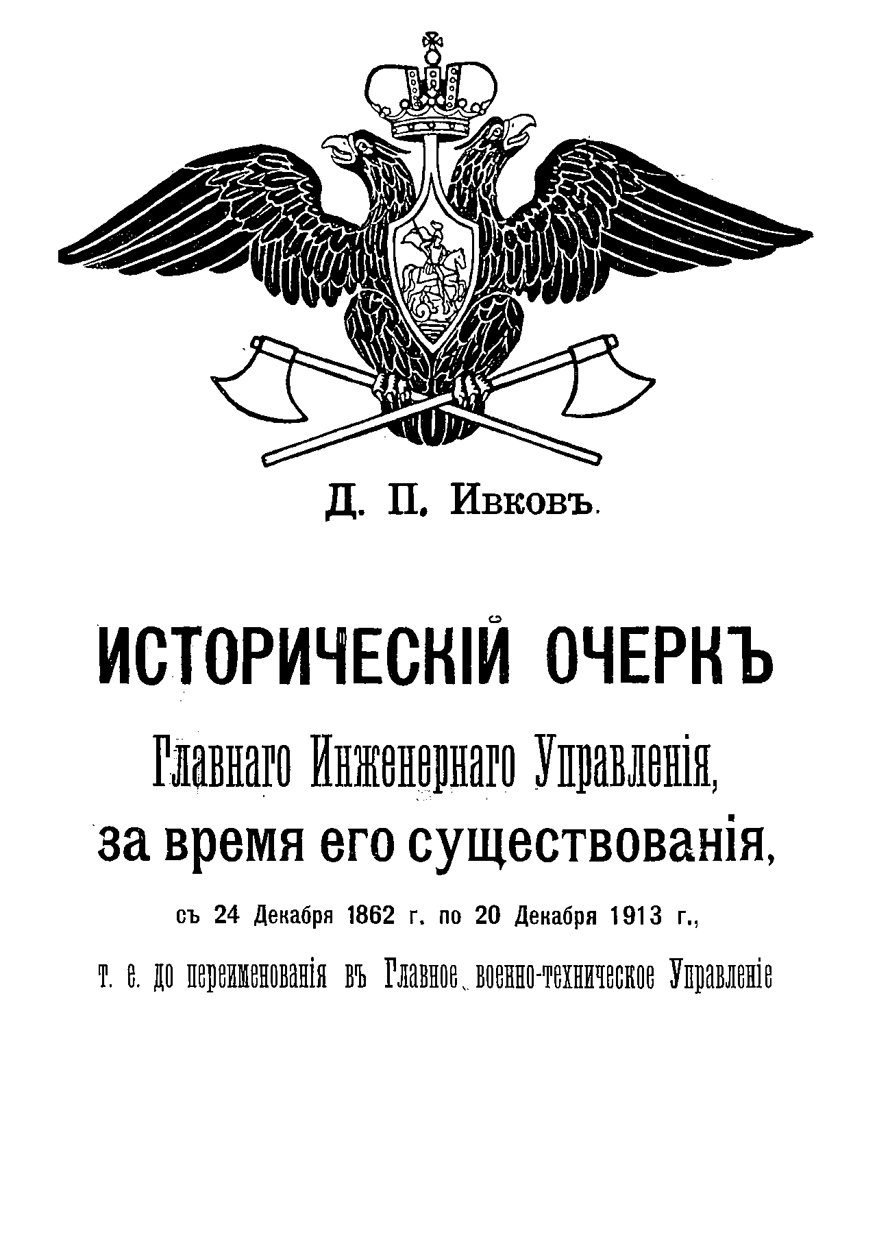 Историческiй очеркъ Главнаго Инженернаго Управленiя, за время его существованiя, съ 24 декабря 1862 г. по 20 декабря 1913 г., т.е. до переименованiя въ Главное военно-техническое Управленiе