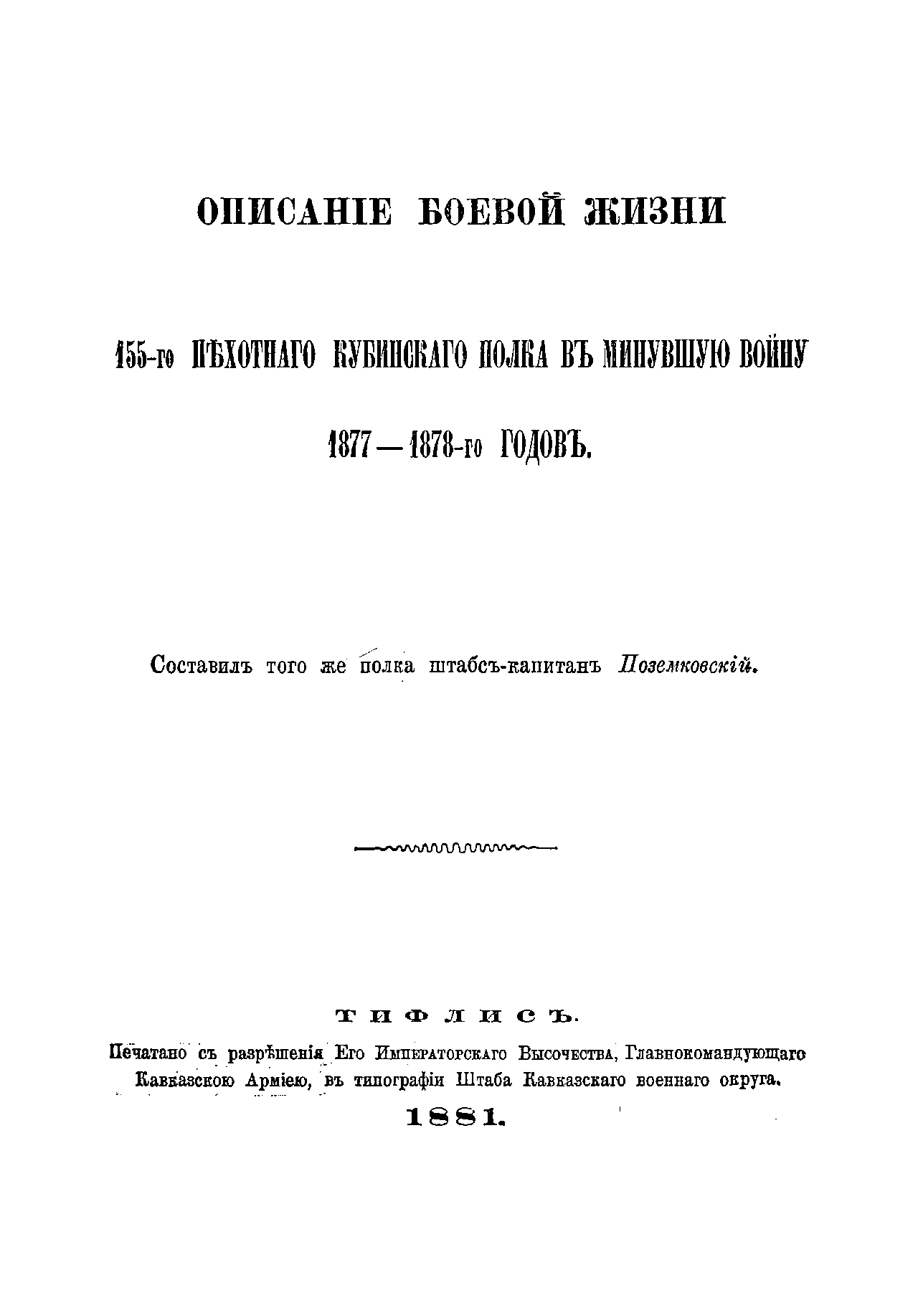 Описанiе боевой жизни 155-го пѣхотнаго Кубинскаго полка въ минувшую войну 1877-1878-го годовъ