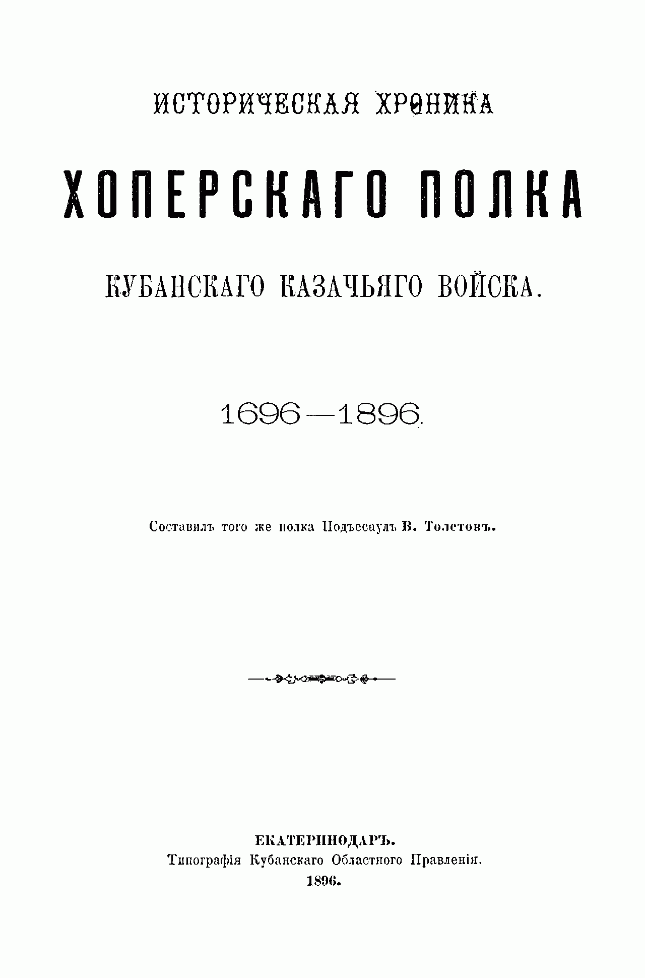 Историческая хроника Хоперского полка Кубанского Казачьего войска
