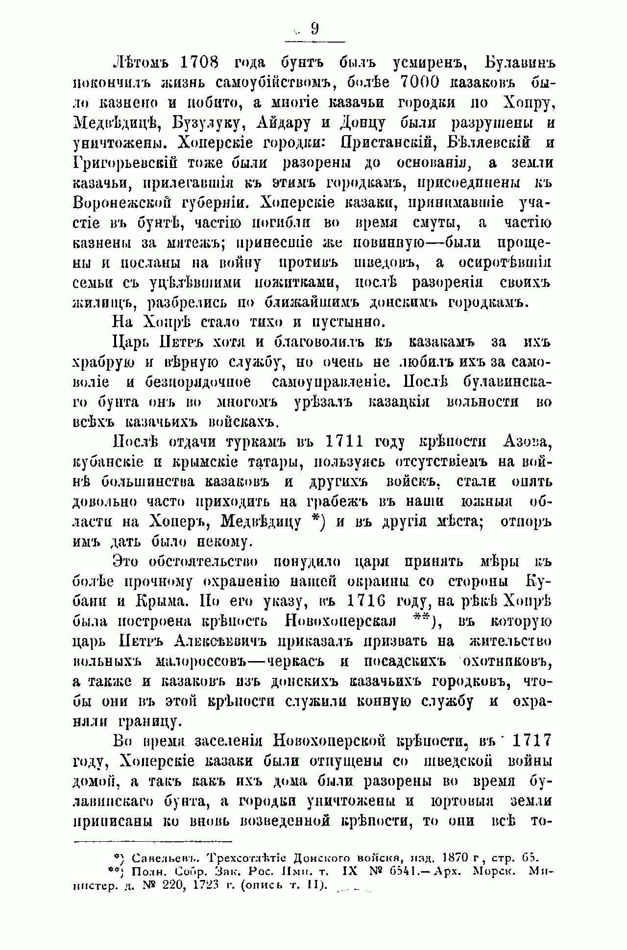 Документальное описание боевых действий полка и знаменательных исторических событий, связанных с ним, за период 1696 – 1896 годов. Приведен список высочайших наград, жалованных Хоперскому полку за подвиги и отличную службу.