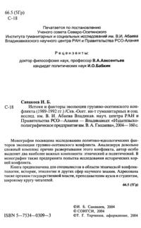 Монография посвящена исследованию политико-идеологических факторов эволюции грузино-осетинского конфликта. Анализируя довольно сложный комплекс причин развертывания этого конфликта, автор особо выделяет два наиболее важных компонента: этнический и политический. И.Б. Санакоев попытался выявить определенный круг проблем в межэтнических отношениях и изучить роль этнических идеологий и политических элит. В монографии также предпринята попытка исследования исторических корней конфликта.