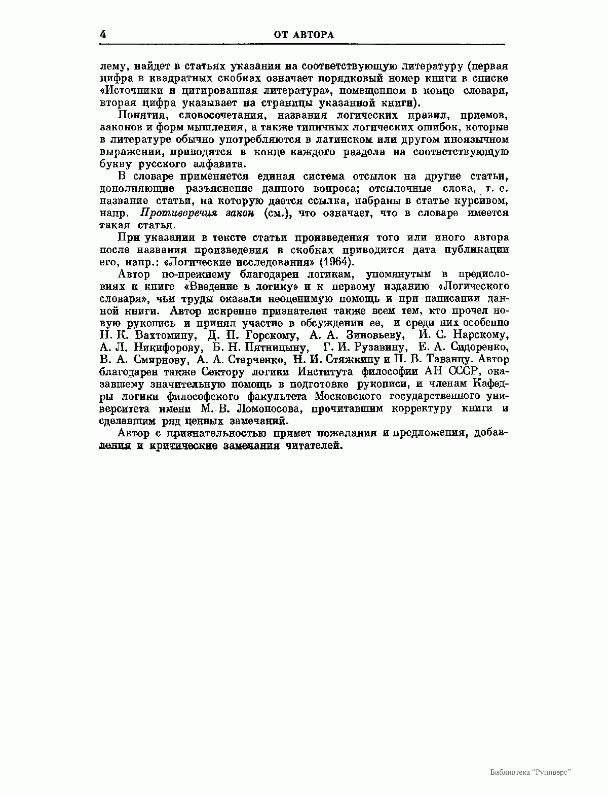 Словарь содержит более трех тысяч статей, в которых на уровне достижений современной науки излагаются основные понятия и категории классической традиционной и математической (символической) логик, рассказывается о применении их в повседневной практике мышления, в процессе самообразования и учебных занятий, в спорах и дискуссиях, в научно-исследовательской деятельности, в электронно-вычислительной технике.