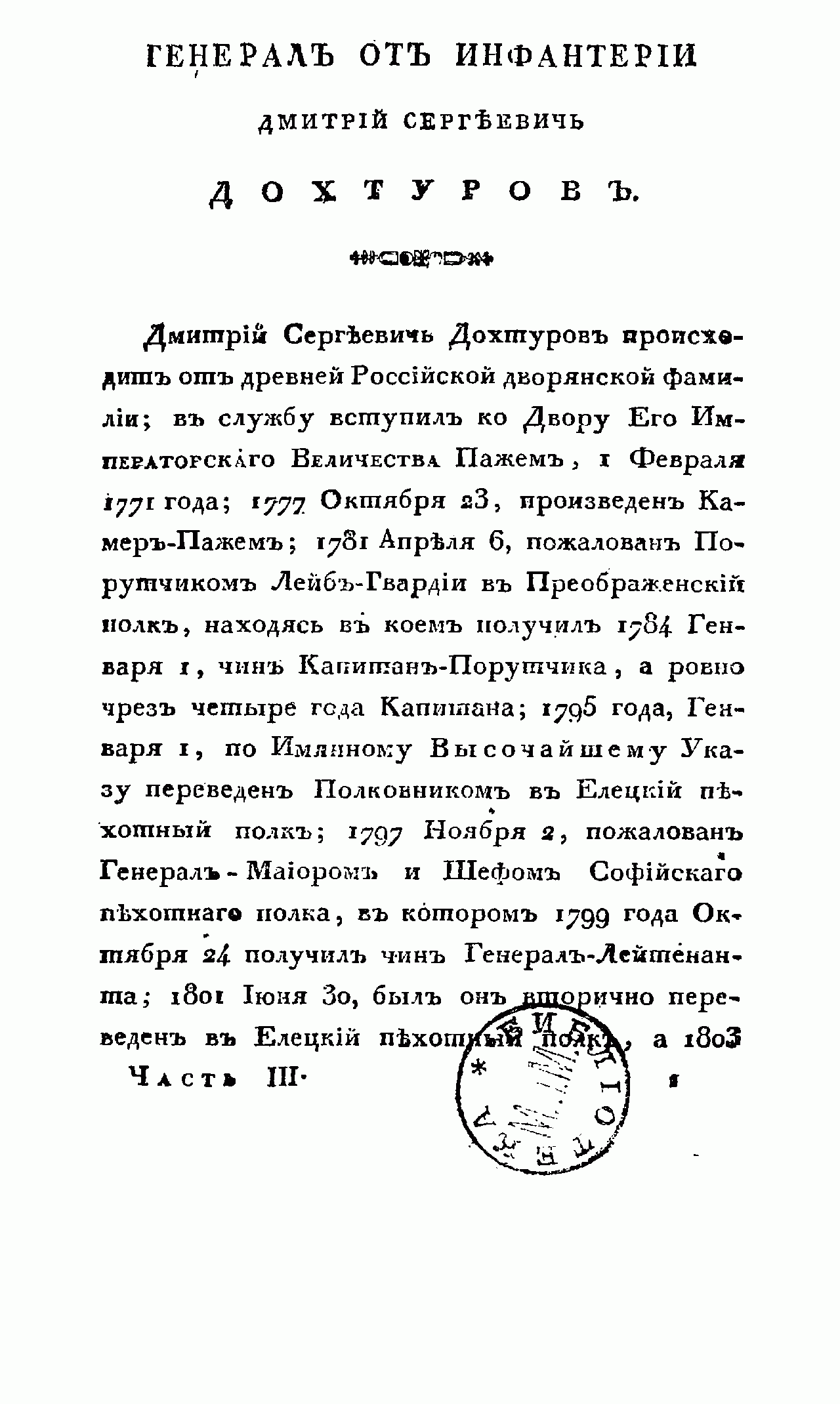 Дѣянiя россiйскихъ полководцевъ и генераловъ, ознаменовавшихъ себя, въ достопамятную войну съ Францiею, въ 1812, 1813, 1814 и 1815 годахъ. Часть третья