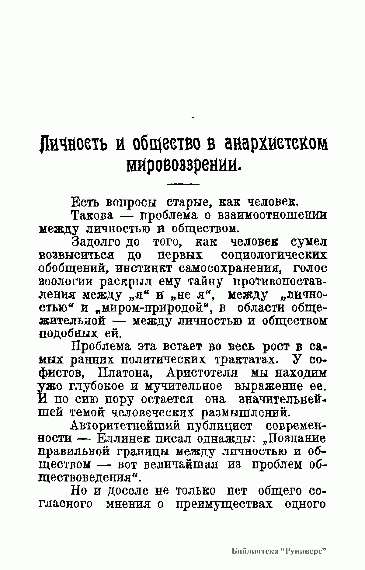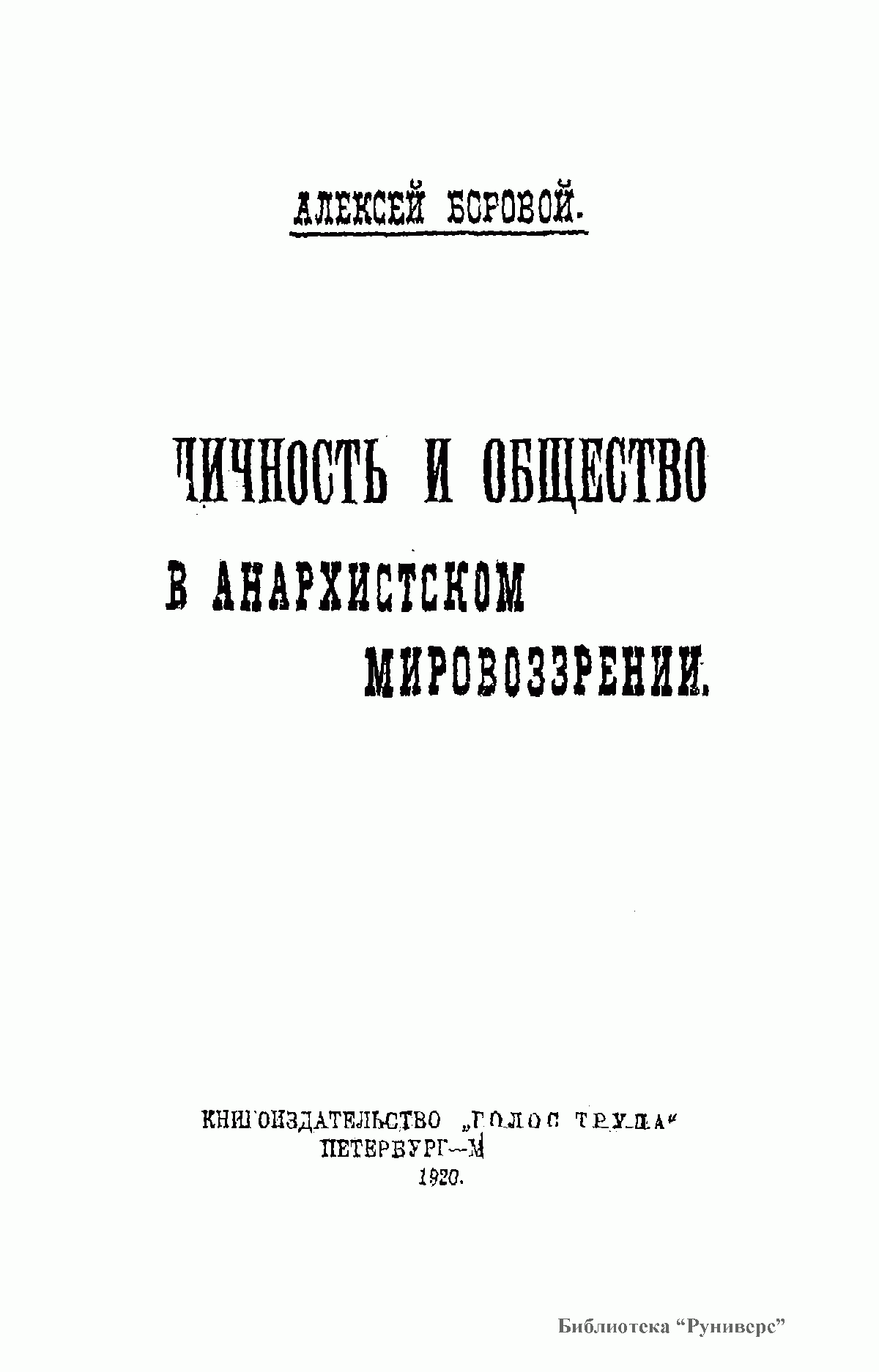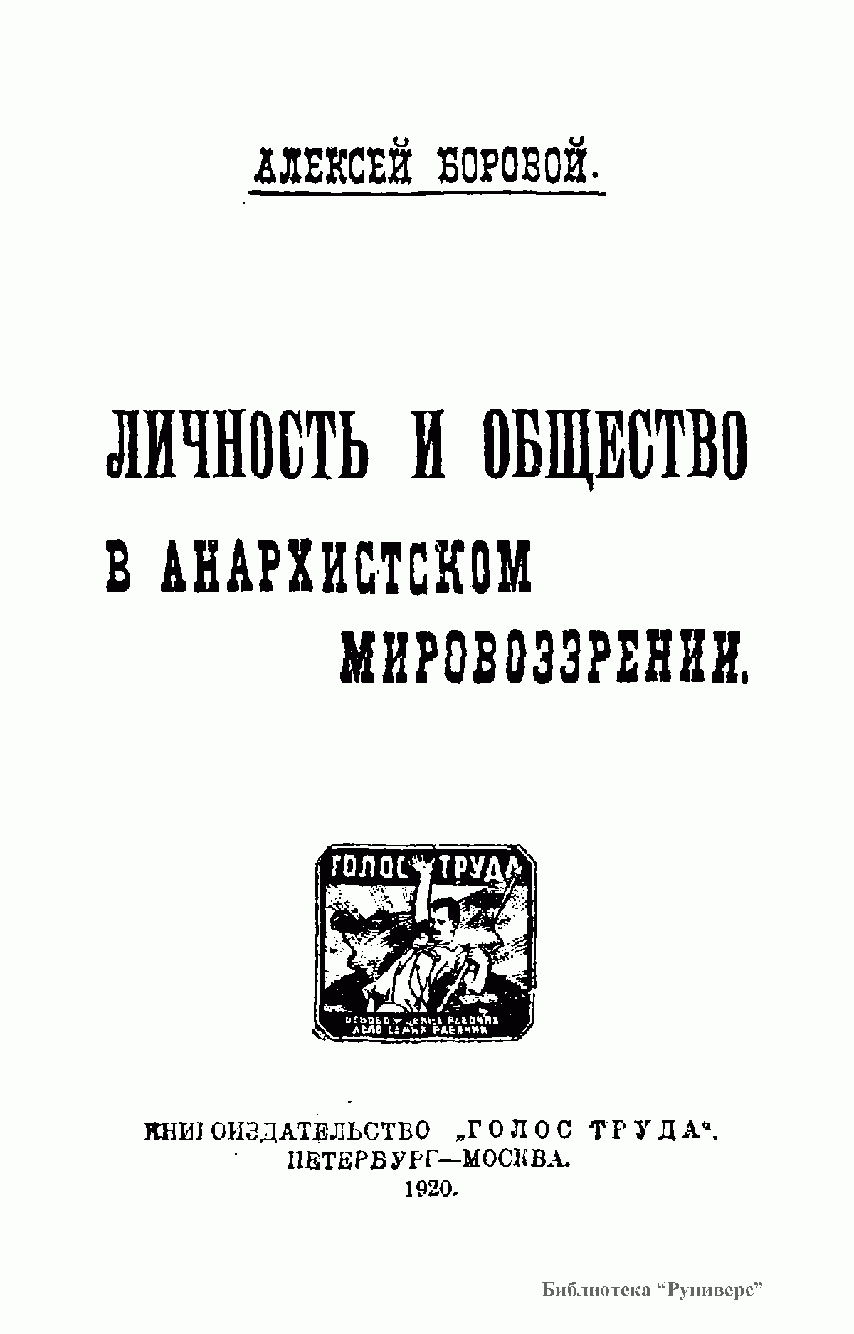 В книге российского философа и историка А.А.Борового (1875-1935) дается всесторонний обзор анархизма в контексте социальных проблем, в аспекте взаимоотношений личночти и общества. Постановку и решение широкого круга проблем (свобода, равенство, смысл и цель жизни, политика) автор дает в историко-философском экскурсе, делая обстоятельный разбор как западных мыслителей, так и отечественных властителей дум (В.С.Соловьева,  П.Л.Лаврова,  Н.К.Михайловского  и др.).