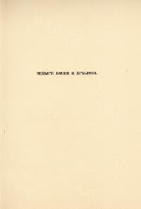 В это издание вошли четыре басни Ивана Андреевича Крылова: «Конь и всадник», «Квартет», «Собачья дружба» и «Демьянова уха», каждая из которых иллюстрирована не издававшимися ранее рисунками художника начала XIX века Александра Орловского. Издание отпечатано типографией Р. Голике и А. Вильборг на плотной бумаге верже желтоватого цвета.
