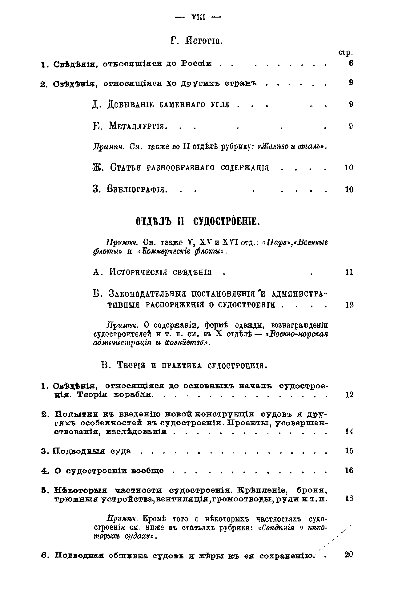 1848–1872 годов. СПб. 1875), состоит из 16-ти тематических разделов, а также разделов, посвященным картам, чертежам, рисункам и портретам. Статьи сгруппированы по следующим разделам: вспомогательные знания, судостроение, вооружение судов и кораблеуправление, кораблевождение, пароходство, гидрография, гидротехника, кораблекрушения и спасательные средства, артиллерия, военно-морская администрация и хозяйство, законодательство и морское право, медицина, морское воспитание и образование, морские общества и заведения, военные флоты и их действия, коммерческие флоты и морские промыслы. Всего же библиографический указатель в двух справочниках включает до 20 тысяч позиций. Помимо этого имеется именной указатель авторов, принимавших участие в «Морском сборнике» за этот период.