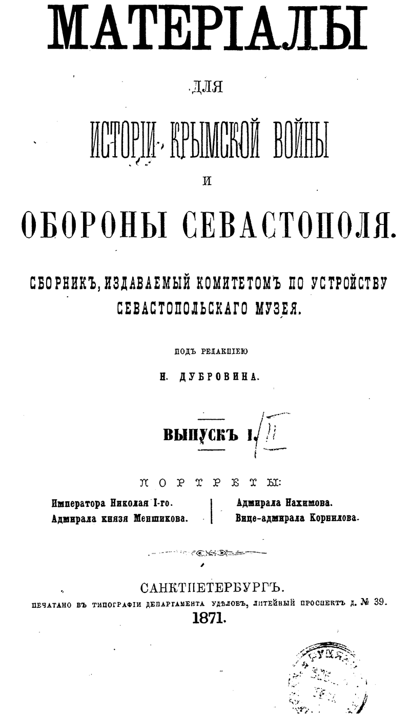 Материалы для истории Крымской войны и обороны Севастополя