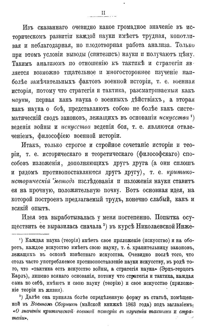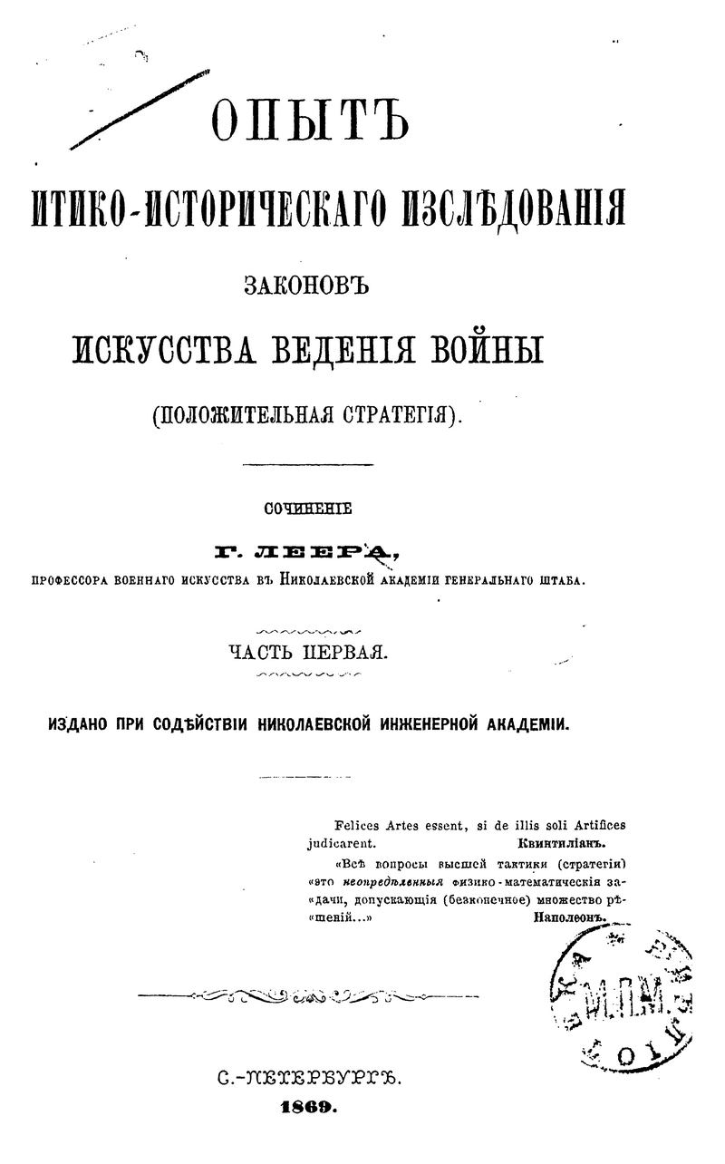 Концептуальное исследование выдающегося российского военного теоретика и учёного генерала от инфантерии Генриха Антоновича Леера является ключевым элементом в разработке теории военной стратегии. Г.А. Леер долгие годы преподавал разработанный им курс военной стратегии в ведущих военно-учебных заведениях Российской империи, с 1889 по 1898 гг. руководил Академией Генерального Штаба. Благодаря своим исследованиям, приобрел широкую международную известность и признание в мировом военно-историческом сообществе. В основе своих исследований, изложенных в данной работе, автор придавал огромное значение военной истории и исторической подготовке офицеров. Данный труд в своей концептуальной базе носит идеалистический характер, но под влиянием требований практики разработан с точки зрения военной теории на основе обобщения мирового военно-исторического опыта. Предложенный автором метод анализа военно-исторических исследований носил ярко выраженный прикладной характер.