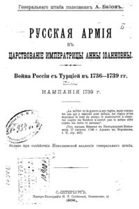 Русская армия в царствование императрицы Анны Иоанновны. Война России с Турцией в 1736-1739гг. Том II. Кампания 1739г.