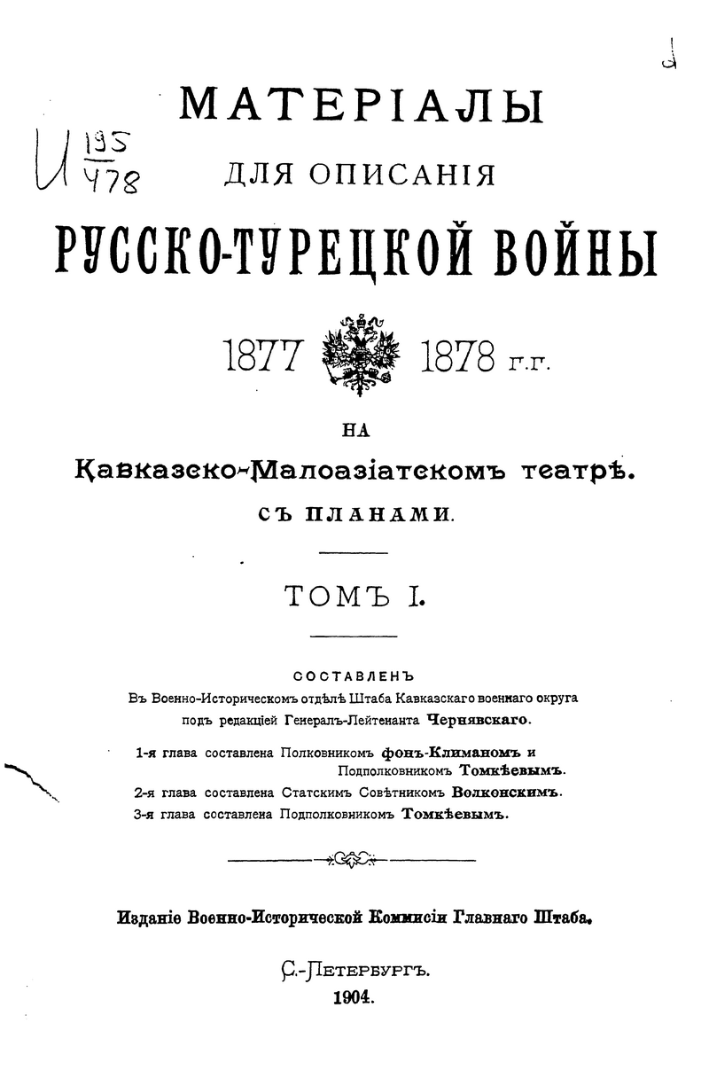 Материалы для описания Русско-Турецкой войны 1877-1878 гг. на Кавказско-Малоазиатском театре