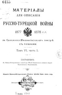 Материалы для описания русско-турецкой войны 1877-1878 гг. на Кавказско-Малоазиатском театре. Том VI, часть I