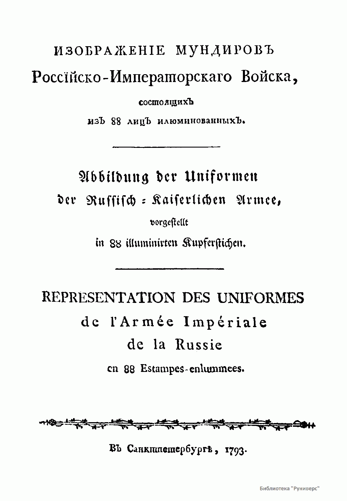 Изображенiе мундировъ Россiйско-Императорскаго Войска